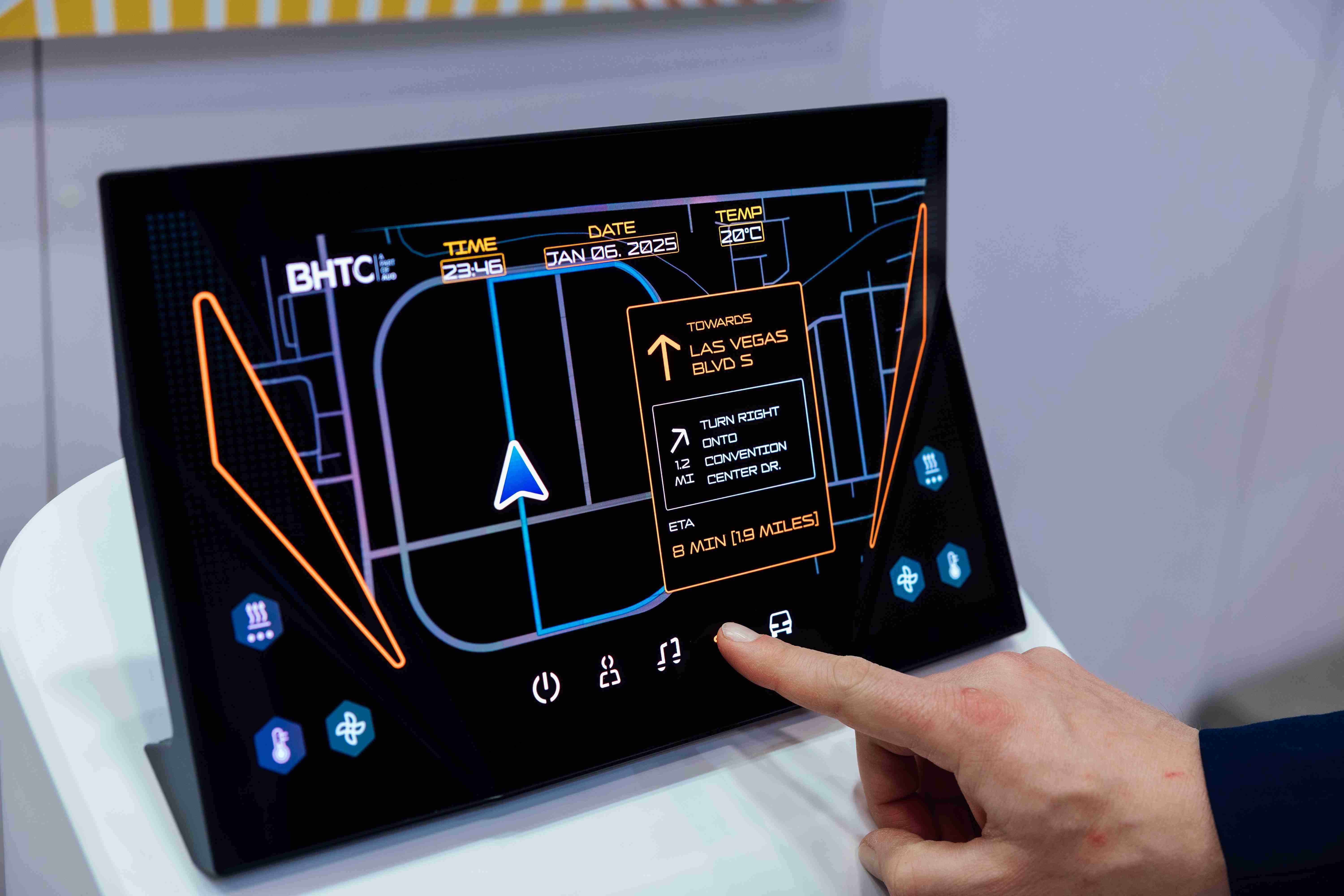 Micro LED可折迭触控显示器(Haptifold Display)结合BHTC多年HMI设计经验,,,,整合中控台和温度控制功能,,,,以优美的曲面和独特的外型助力车内设计美学,,,在辅以触控回馈下,,,为驾驶带来更直觉的使用体验。。